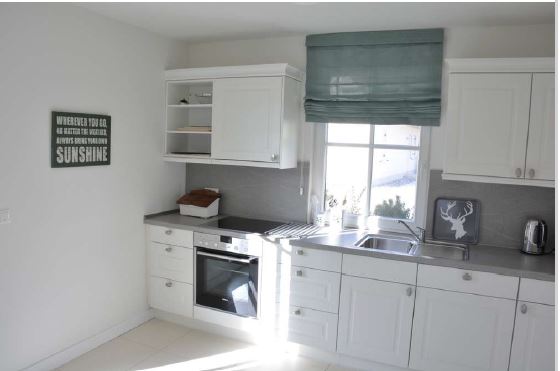 Die Küche ist mit Gefrierfach, Backofen sowie vielen weiteren