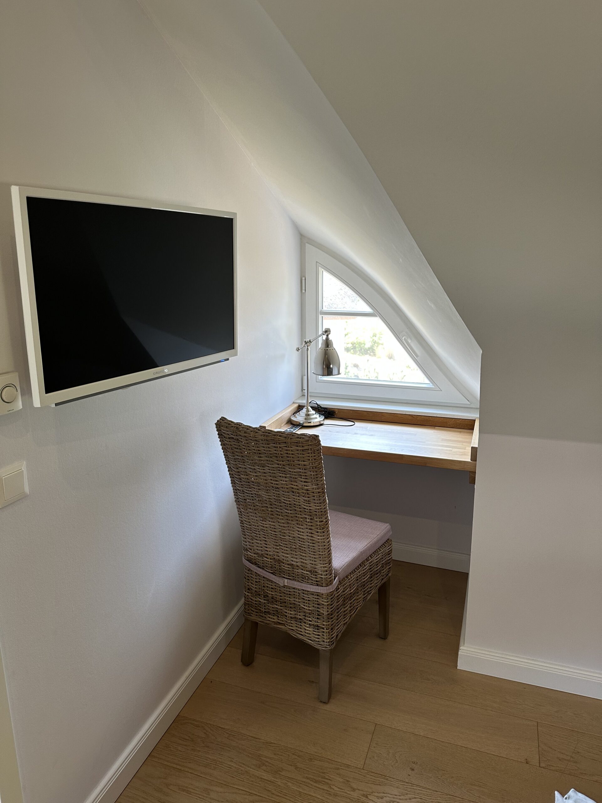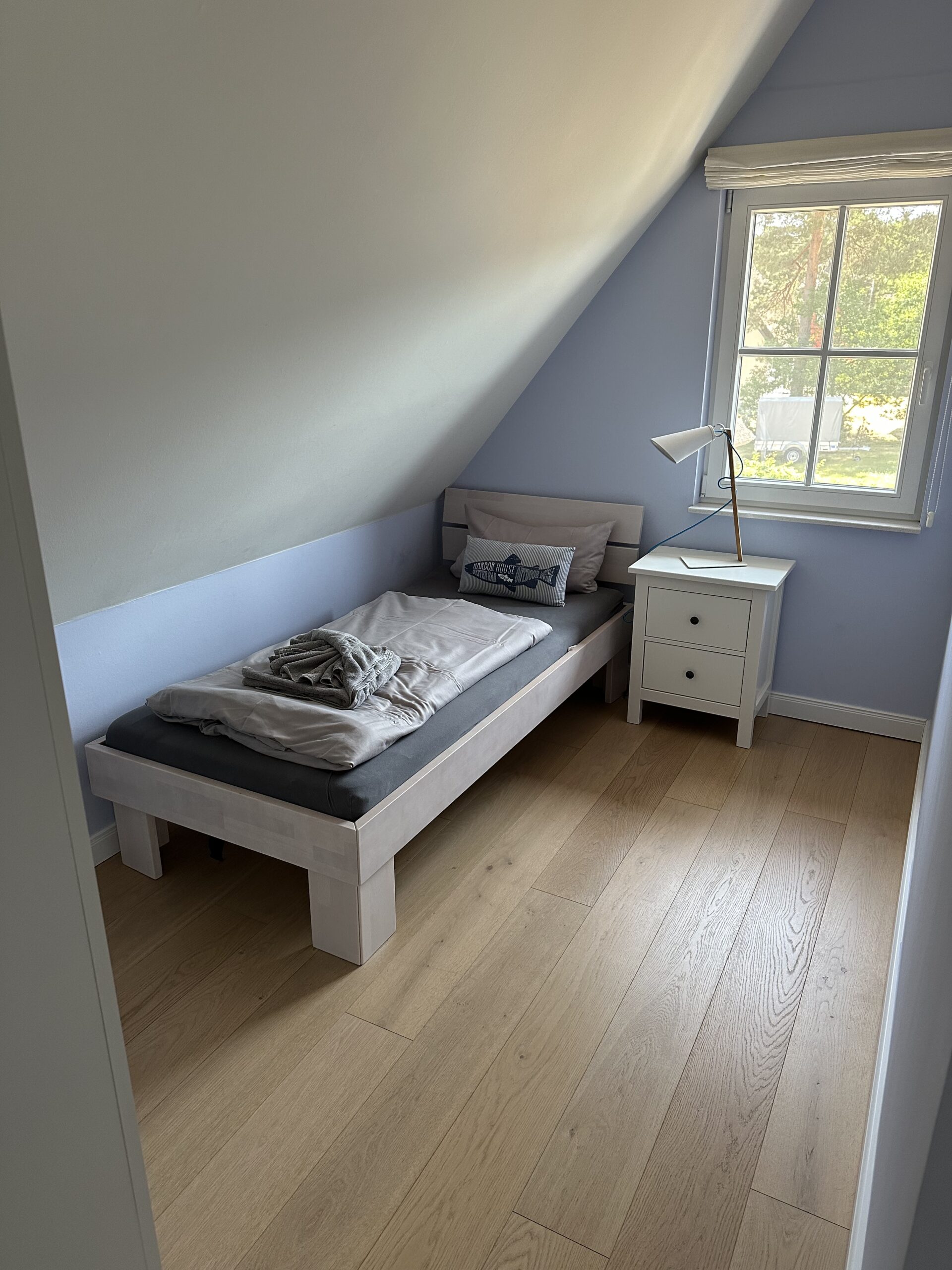 Das Obergeschoss ist aufgeteilt in ein Schlafzimmer mit Doppelbett